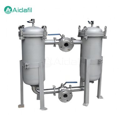 1. Projeto paralelo. Duas unidades de filtro de mangas são instaladas em paralelo, cada unidade contém um filtro de aço inoxidável, uma cesta de suporte do filtro e uma válvula de purga. A válvula de purga na parte superior é usada para remover o ar do sistema de filtração inicial para garantir que nenhuma bolha de ar interfira no processo de filtração.